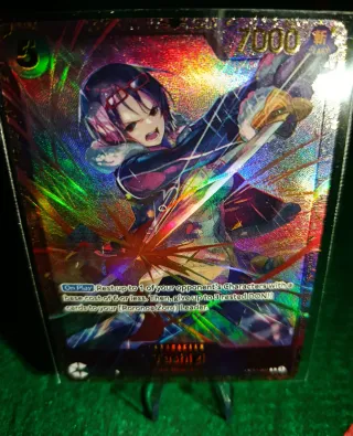 Carta de Eustass Captain Kid del juego de cartas coleccionables One Piece (OPTCG). Es una carta SR (Super Rare) con arte completo y acabado holográfico fanart! 📦 Envío rápido por Wallapop 🛡️ Carta protegida con sleeve + sobre rígido acolchado 📸 Estado exactamente el de las fotos. 🔒 Posibilidad de pack con otras cartas con DESCUENTAZOS! (consulta por privado) - Tipo: Personaje - Coste: 7 - Poder: 6000 - Habilidad: Al jugar o al atacar, puedes devolver el número especificado de cartas DON!! de tu campo a tu mazo DON!!: Hasta 1 de tus Líderes gana +1000 de poder hasta el inicio de tu próximo turno. - Fabricada en Japón.