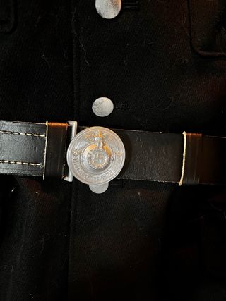 Lote de artículos de colección alemanes. TODO RÉPLICA. - Gorra negra con insignia de águila y calavera. - Cinturón con hebilla. - Insignia de águila con esvástica.