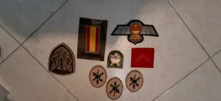 Conjunto de parches militares variados. - Parche con la bandera de España. - Parche de paracaidista. - Parche con alas y símbolo. - Parche con diseño tribal. - Parche rojo con chevron. - Tres parches circulares con espadas cruzadas. Se venden por separado,preguntar sin compromiso,todos son originales