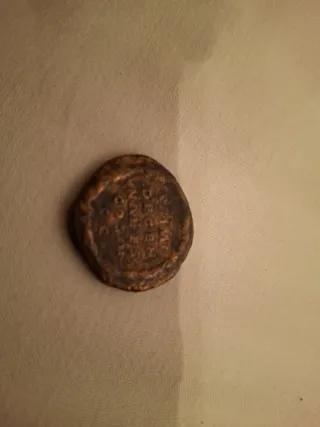 Moneda antigua de origen romano. Presenta un diseño detallado en relieveal parecer es Eliogalo - Material: Bronce o cobre (apariencia) - Diseño: Rostro o figura histórica en anverso - Reverso: Patrón o símbolo antiguo