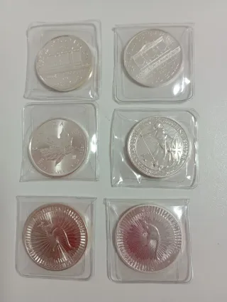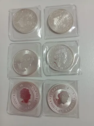 Se venden 6 monedas de plata de 1 onza cada una. Ideales para coleccionistas o inversores. - Plata de alta pureza. - Diseño detallado. - Cada moneda viene protegida individualmente Si quieres por unidades 61€ cada una