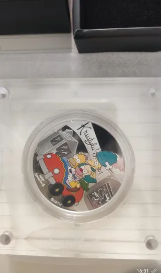 Moneda conmemorativa de Los Simpsons. - Tirada limitada. - Diseño en plata con detalles a color. - Personajes icónicos de la serie. - Moneda con estuche y certificado de Autenticidad numerado.