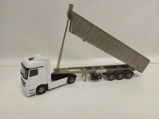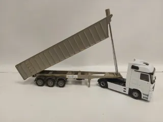Réplica de camión Mercedes con remolque Tisvol. - Color blanco y gris. - Modelo a escala Joal. La bañera se vende en el estado que se ve en las fotos la Mercedes es nueva y tiene los retrovisores quitados