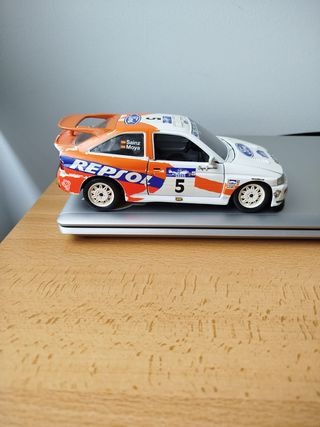 Réplica del Ford Escort RS Cosworth de Carlos Sainz fabricado por Bburago a escala 1/24. - Rally Acropolis 1997. - Patrocinadores como Repsol y Pepe Jeans. - Número de dorsal 5.