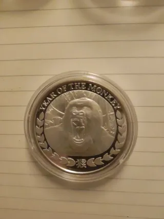 Moneda de plata conmemorativa de Somalilandia del Año Lunar Chino, año del Mono de Somalilandia. Año 2016. Presenta un diseño detallado del animal. - Material: Plata. 1 Oz 999 - Diseño: Año del Mono. - País: Somalilandia.