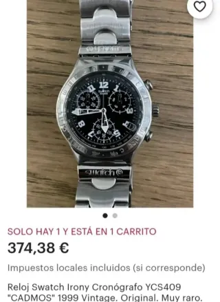 OFERTA 38€ CON EL ENVÍO..!! SOLO HASTA FINAL DE LA OFERTA..!! NO SE REBAJA NI 1€ MAS. YA ESTA REBAJADO..!! Reloj Swatch Cadmos, YCS409G. Cronógrafo, el reloj funciona excelente, lo que le falta un botón del lado derecho de abajo, lo cual no afecta a su funcionamiento y con evidente signo de desgaste, de hay su bajo precio, 65€ en mano y 70€ con el empaquetado y envío incluido, pregunta sin compromiso.. NO HAGO ENVÍO POR LA APP..!! NO DISPONGO DE MONEDERO NI CUENTA EN LA APP..!!