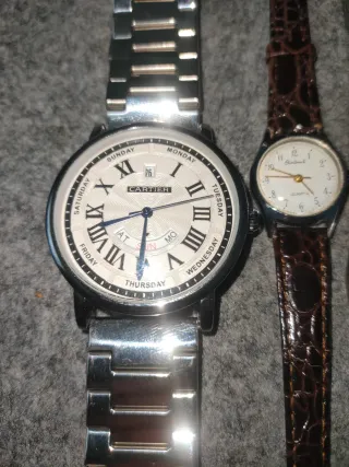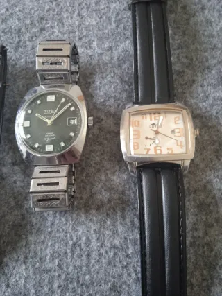 OFERTA 45€ CON EL ENVÍO Y EMPAQUETADO INCLUIDO..!! YA ESTÁ REBAJADO 15€..!! Vendo dos relojes de pulsera vintage. Uno es un Titán Tenox 17 jewels mecánico, con correa de metal elástica más una correa de cuero vintage, que llevaba, de apariencia clásica y elegante. El otro es un Lotus vintage con calendario semanal y con correa de cuero negra, de diseño cuadrado y moderno. Ambos relojes presentan un estado usado pero conservan su encanto vintage.. Precio de 60€ en mano y 65€ con el empaquetado y envío incluido..EL PRECIO ES ALGO NEGOCIABLE..!! NO HAGO ENVÍOS POR LA APP..NO TENGO MONEDERO NI CUENTA EN LA AP
