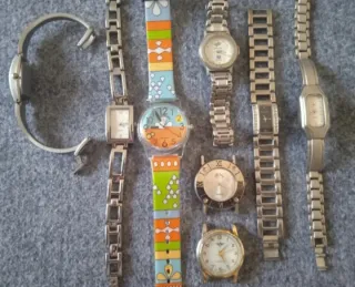 Se venden 8 relojes de cuarzo vintage. Son de diferentes estilos y marcas. Algunos tienen correas metálicas, todos han sido probados, para todo uso diario. Se pasan fotos o videos por Whats. Antes de realizar la compra, 20€ en mano y 30€ con el empaquetado y envío incluido, envío por correo certificado, pago mediante transferencia o bizum, preferiría venta en persona..!! NO HAGO ENVÍOS POR LA APP..!! NO TENGO MONEDERO NI CUENTA EN LA APP..!! Pregunta sin compromiso..!!