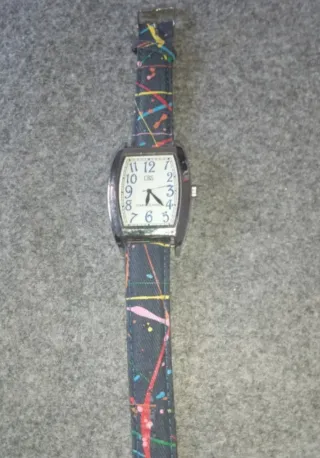 Reloj Dominico&Stefano de pulsera con un diseño llamativo y original. Estilo Prada, como los que lleva Alberto Chicote. - Esfera blanca con números azules. - Correa de tela con salpicaduras de colores, Reloj llamativo, para todo uso diario. Se pasan fotos o videos por Whats. Antes de realizar la compra, 30€ en mano y 35€ con el empaquetado y envío incluido, envío por correo certificado, pago mediante transferencia o bizum, preferiría venta en persona..!! NO HAGO ENVÍOS POR LA APP..!! NO TENGO MONEDERO NI CUENTA EN LA APP..!! Pregunta sin compromiso..!!