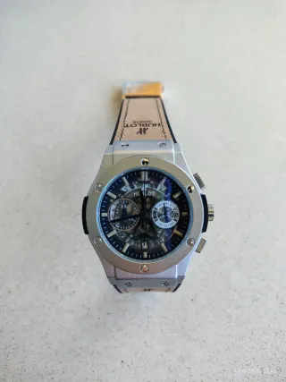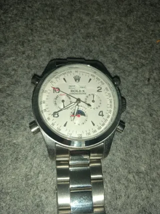OFERTA 38€ CON EL ENVÍO..!! SOLO HASTA FINAL DE LA OFERTA..!! NO SE REBAJA NI 1€ MAS YA ESTA REBAJADO 22€..!! Elegante reloj con movimiento automático y función cronógrafo. Un clásico que combina estilo y precisión. - Esfera plateada con detalles en negro y azul. - Indicadores de día, fecha y fase lunar. - Bisel con escala taquimétrica. - Brazalete de acero inoxidable. El único problema que tiene es la fecha anual, por lo demás va fenomenal y muy fino..que no afecta a los funcionamiento del reloj, más información, fotos o vídeo por privado. Precio incluye el empaquetado y envío..!! NO HAGO ENVÍO POR LA APP..!! NO DISPONGO DE MONEDE