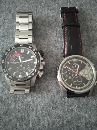 OFERTA 40€ CON EL ENVÍO Y EMPAQUETADO INCLUIDO..!! YA ESTÁ REBAJADO 15€..!! Se venden dos relojes de la marca Pagani. - Pagani Edificce. Reloj con correa de metal plateado. - Pagani Sport F-1 Reloj con correa de cuero negra y pespuntes rojos..Están usados pero en muy buenas condiciones, los dos son de cuarzo , a falta de ponerles Pilas ( batería ) para todo uso diario. Se pasan fotos o videos por Whats. Antes de realizar la compra, 50€ en mano y 55€ con el empaquetado y envío incluido, envío por correo certificado, pago mediante transferencia o bizum, preferiría venta en persona..!! NO HAGO ENVÍOS POR LA APP..!! NO TENGO MONEDERO