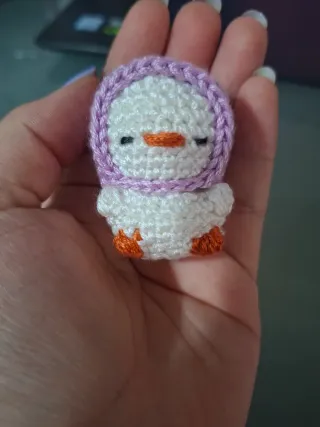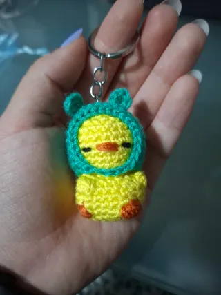 Lindo llavero de pato tejido a mano a crochet. De lana acrílico.