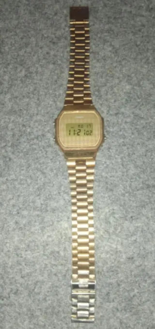 Reloj Casio modelo A168 modulo 1572. con un diseño clásico y atemporal. - Acabado en color dorado. - Correa metálica. - Estilo retro. Se pasan fotos o videos por Whats. Antes de realizar la compra, 25€ en mano y 30€ con el empaquetado y envío incluido, envío por correo certificado, previo pago mediante transferencia o bizum, preferiría venta en persona..!! NO HAGO ENVÍOS POR LA APP..!! NO TENGO MONEDERO NI CUENTA EN LA APP..!! Pregunta sin compromiso..!!