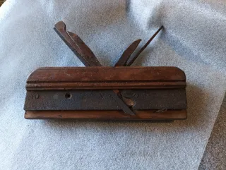 Herramienta antigua de carpintería para crear molduras. - Fabricado en madera y hierro. - Diseño clásico para trabajos de ebanistería. - Alguna marca de polilla debido a su antigüedad.