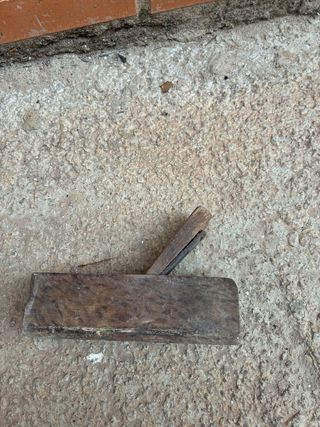 Herramienta antigua de carpintería, un cepillo o ruban de madera. - Fabricado en madera. - Mango de sujeción. Se vende antiguo cepillo / ruban de carpintero de madera, en buen estado general. • Longitud: 64 cm • Material: madera maciza con cuchilla metálica • Herramienta tradicional, ideal para coleccionistas, restauradores o para uso decorativo • Conserva un aspecto rústico y auténtico, con señales normales de uso propias de su antigüedad • Perfecto como pieza decorativa para talleres, bares temáticos o amantes de la carpintería clásica Un cepillo de este tamaño corresponde a un modelo largo (tipo garlopa), utilizado para tr