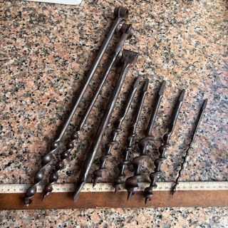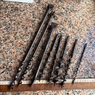 Conjunto de brocas antiguas para madera, fabricadas en metal. - Variedad de tamaños y diseños. - Ideales para coleccionistas o uso decorativo. No leer: forjada en fragua de carbón,herrero,tonelería,carpintería,carpintero,herramienta de talla gubia,abarqueiro,tonelería,tonelero,campo,siega,jardín,labranza,talar,rustico,huerto,huerta,minero,mina,cantero,picapedrero,bushcraft,hojalatero hojalateria rural pueblo