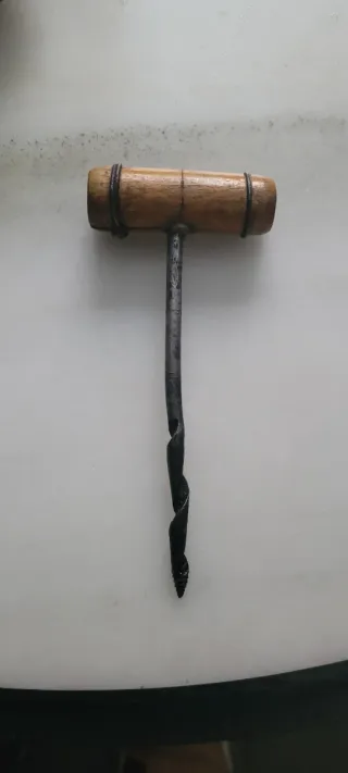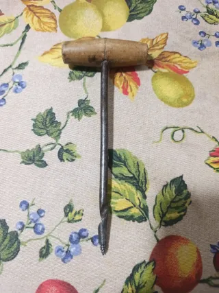 Herramienta manual para carpintería con mango de madera. - Mango de madera. - Varilla metálica con punta helicoidal.