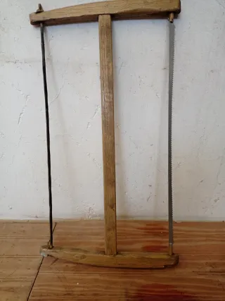 Lote de 3 sierras de bastidor antiguas, herramientas tradicionales de carpintería y serrado manual. Descripción: • Bastidores de madera maciza • Hojas de acero originales • Sistema de tensado por cuerda/varilla • Época aprox. finales s. XIX – primera mitad s. XX • 2 sierras completas + 1 bastidor sin hoja • Estado original, con desgaste y pátina del tiempo Ideales para coleccionistas, decoración rústica, restauración o uso tradicional. Estado: usadas, sin roturas graves (ver fotos) Venta solo en lote