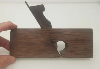 Herramienta clásica de carpintería, ideal para coleccionistas o proyectos de restauración. - Cuerpo de hierro fundido. - Mango de madera oscura. - Cuchilla de acero.