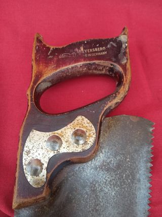 Cerrucho antiguo, herramienta de carpintero, marca Weyersberg, made in Germany, antiguo fabricante de armas, cuchillos, decoracion taller carpinteria, colección, mide 45cm