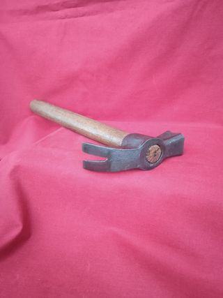 Pequeño martillo antiguo, taller de carpinteria, martillo de uña, colección, exposición, mide 9,5cm, pesa 240gr
