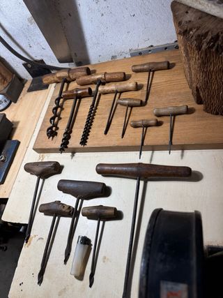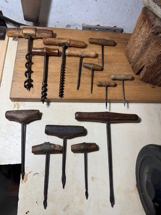 Conjunto de barrenas antiguas de carpintero. con mangos de madera y vástagos de metal. Perfectas para coleccionistas o para trabajos de carpintería. - Variedad de tamaños y diseños. - Materiales resistentes para durabilidad. Desde tres euros según barrena ...