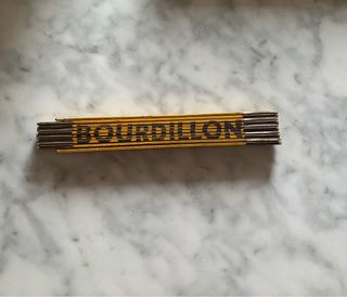 Metro plegable antiguo con la marca BOURDILLON grabada. Fabricado en Francia, herramienta para carpintería, coleccionista o decoración. Graduación métrica en ambos lados, 10 barras. Longitud total 2m. - Diseño plegable. - Grabado de marca visible.