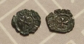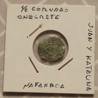 Moneda antigua de 1/2 Cornado de Juan y Katalina. Navarra. - La de la imagen.