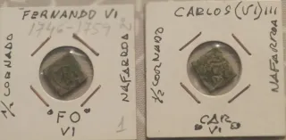 Conjunto de dos monedas Medio Cornado de Navarra. - Una moneda de Fernando VI. - Otra moneda de Carlos III. - Ambas son de Navarra. - Los de la imagen.