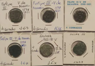 6 Monedas 4 Cornados Navarra Felipe III-V