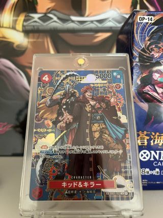 Carta coleccionable de Kid & Killer del set OP14 de One Piece. - Número de carta: 4 - Poder: 5000 - Tipo: Personaje - Afiliación: Supernova / Piratas de Kid