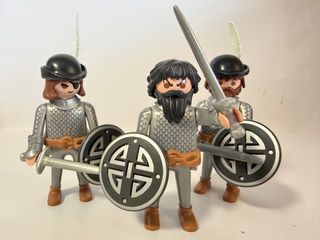 Conjunto de tres figuras de caballeros medievales de Playmobil, listos para la aventura. Todas las piezas originales 100% Completa o combina con otros artículos a la venta, se unifican envíos para abaratar costes Entrega en mano sólo zona sur de Madrid (Pinto Fuenlabrada o Humanes de Madrid), envío por correo ordinario, certificado, Punto Pack Playmobil, Famobil, Click, clic, keko, City, Policia, Police, Oeste, western, wester, Belen, Roma, Egipto, Medieval, Medioval, super4, Súper 4, Serie, 10, 11, 12, 13, 14, 15, 16, 17, 18, 19, 20, 21, Special Plus