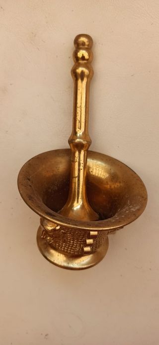 Precioso y antiguo mortero de latón. Ideal para decoración. Sin usar. - Material: Latón. - Diseño antiguo y detallado. Se entrega en Humanes de Madrid y también se hace envío por la aplicación.