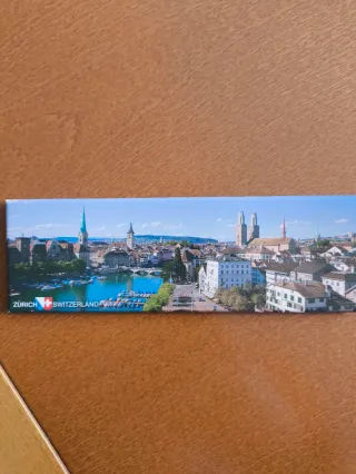 Imán de nevera con una vista panorámica de Zúrich, Suiza. Muestra el lago y la arquitectura de la ciudad. - Diseño de Zúrich, Suiza. - Representación del paisaje urbano y el lago.