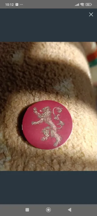 Imán con el emblema de la Casa Lannister. - Diseño del león rampante. - Fondo rojo.