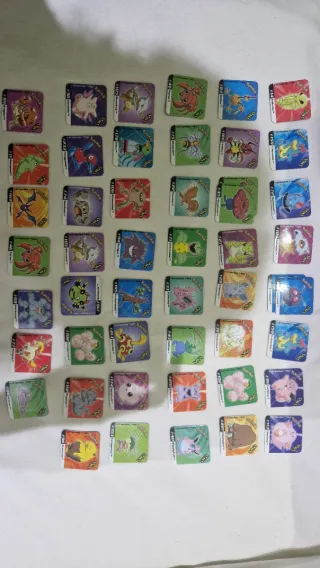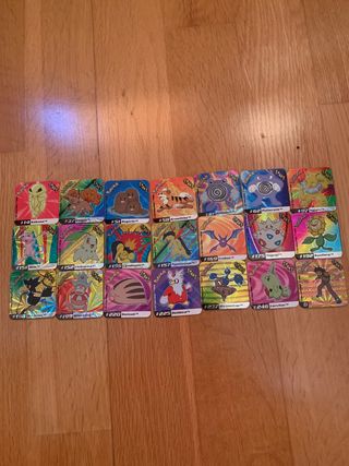 Colección de tazos de Pokémon. - Incluye tazos redondos y cuadrados. - Diseños variados de personajes Pokémon.