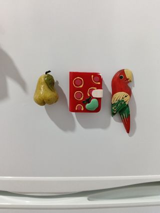 Imanes nevera: loro,pera, libro.