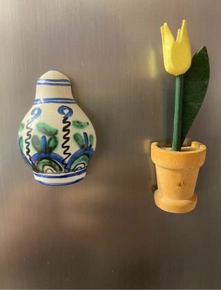 Varios imanes para alegrar tu frigorífico. Son de resina pintada. Cada uno vale 2€ Libélula 4,5 x 4,5 cm 3 mariposas de plastico Tarro ceramica 5 x 4 cm Tiesto tulipán 7,5 x 2,5 cm ( es de madera ) Gastos de envío a cargo comprador