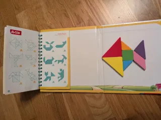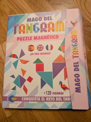 Juego de tangram magnético, perfecto para llevar de viaje y entretener a los más pequeños. Incluye varias figuras para construir. En buen estado - Piezas imantadas. - Incluye libro de modelos.