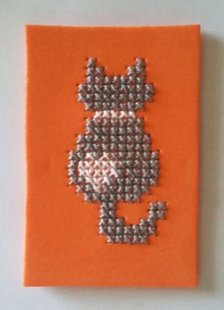 Imanes hechos a mano, bordados en punto de cruz sobre goma eva. 2€ cada uno.