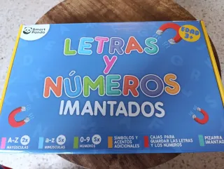 Bote con imanes de números para niños. - Ideal para aprender y jugar. - Contiene varios números y colores.