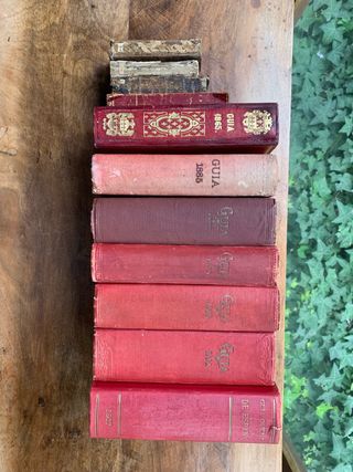 Conjunto de libros antiguos de la colección Guía Oficial de España ( 11 piezas ) Segun el año el titulo es “ Guia Oficial de España “ o “ Guia de Forasteros “ o “ Calendario manual y guia de forasteros de Madrid “ o “ Guia Politica y Militar “ o “ Kalendario manual y guia de forasteros en madrid “ de la Imprenta Real - Títulos visibles: 1789, 1806, 1821 , 1855, 1865, 1885 , 1893 ,1899, 1900, Guía 1902, 1904, 1917 - Encuadernaciones en tela y cuero. - Diseños ornamentados en algunas portadas. Si tiene interes en alguna pieza en especial se podria vender por separado consultando precios