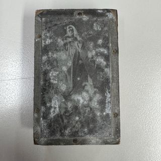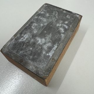Cliché antiguo de imprenta original con la imagen de La Virgen de los Dolores de Alcalá del Río. Las medidas en las fotos