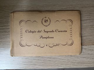Librito con 16 postales del colegio Sagrado Corazón de Pamplona. De la editorial e imprenta Huecograbado Fournier (Vitoria). A diferencia de los desplegables comunes, este ejemplar tiene formato de álbum/librito, conservando toda su estructura original. Vistas interiores únicas: Cocina, dormitorio, gran capilla, aulas y salones. Fachadas y jardines: Perspectivas del colegio y su arquitectura.
