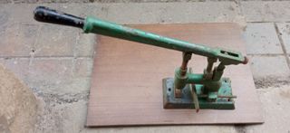 Vendo a 60 euros herramienta antigua de imprenta, conserva una placa de una empresa que hubo en Bilbao, llamada Fernando Llaguno. La apoyé sobre una tabla, para las fotografías. No envío, entrego en un punto determinado de Bilbao.
