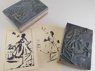 PAREJA PLANCHAS IMPRESION PARA POSTAL ROMANTICA AÑOS 50 -UNA ES PARA COLOR FONDO Y LA OTRA PARA PERFIL-SE OFERTA PAREJA DE PLACAS SE HA REALIZADO UNA PRUEBA SIMPLE DE MARCAJE EN PAPEL CON TINTA DE TAMPON SIN NINGUN RIGOR ARTISTICO PROFESIONAL Y LOS RESULTADOS SON SUBJETIVOS chibalete- cliché -imprenta,- tipos- tipográficos -letras -sello-plancha antigüedad- artes gráficas -litografía -óleo- medalla- grabado- daguerrotipo- lienzo