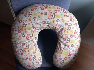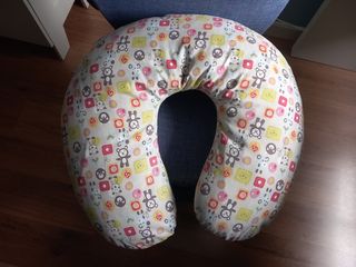 Cojín de lactancia con un divertido estampado infantil de ositos y flores. - Diseño en forma de U. - Tejido suave y cómodo. - Ideal para la lactancia o como soporte.