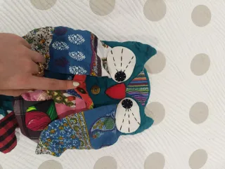 Mochila infantil con un divertido diseño de búho, confeccionada con retazos de tela. - Diseño de búho. - Estilo patchwork con diversas telas. - Ideal para niños.