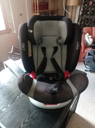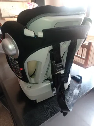 Silla de coche infantil con diseño moderno y seguro. - Tapicería acolchada. - Cinturón de seguridad de 5 puntos. - Reposacabezas ajustable.