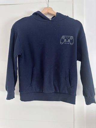 Sudadera azul para niño con un diseño de mando de videojuegos. - Capucha. - Bolsillo delantero. - Puños y bajo elásticos.